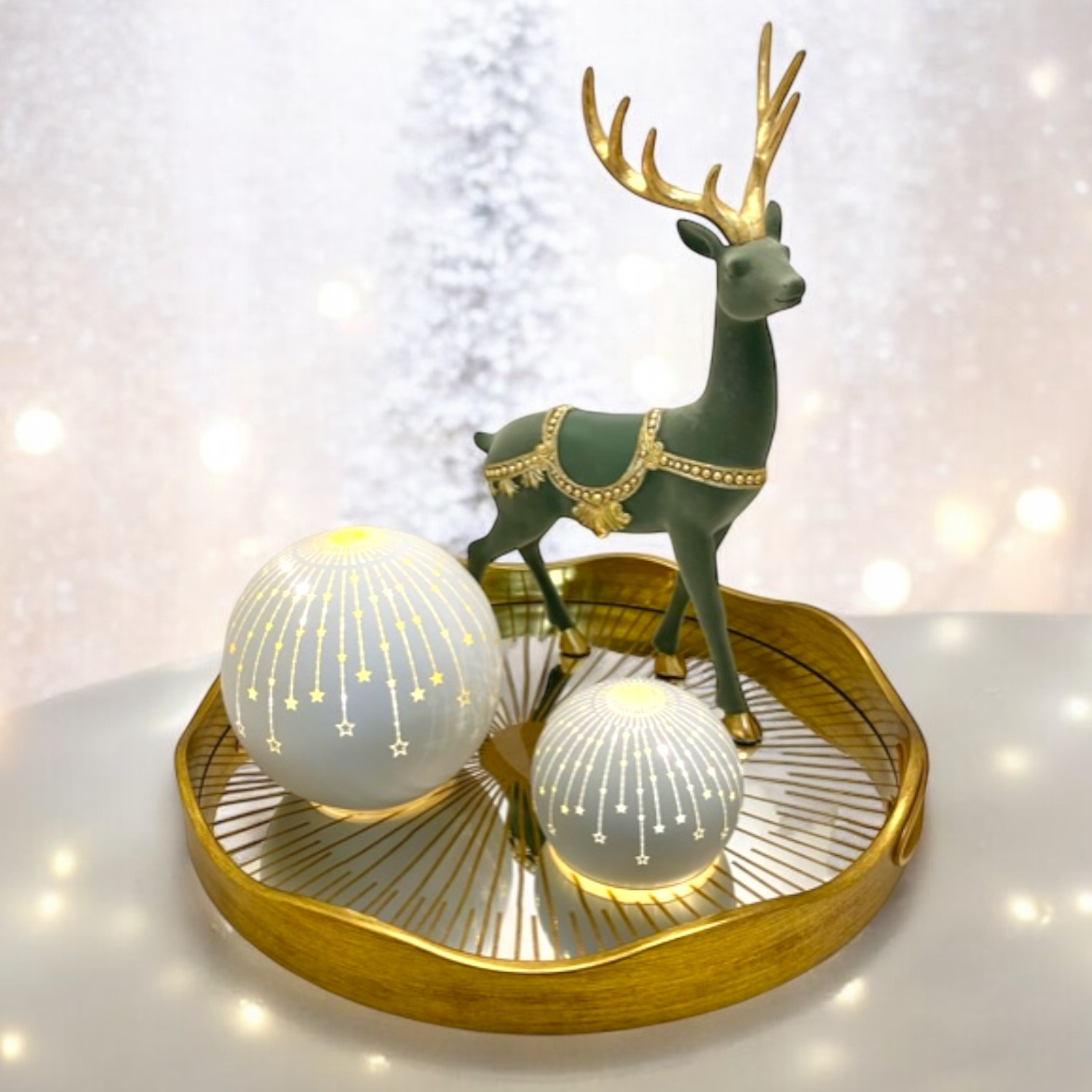 Δίσκος καθρέφτης art nouveau style Βελούδινος διακοσμητικός τάρανδος Σετ των δυο τεμαχίων, μπάλες με αστέρια, επιτραπέζια διακοσμητικά-φωτιστικά